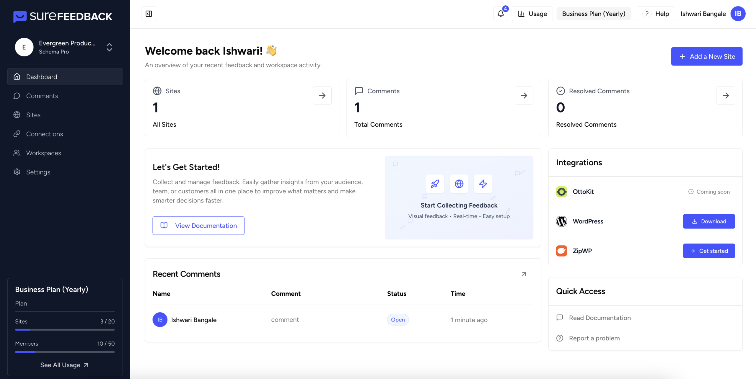 In this article, you’ll learn how SureFeedback helps you quickly connect your WordPress site, gather valuable feedback, and make smarter decisions based on real user insights. We’ll walk you through every step of adding your first website, right from registering an account to verifying your connection.