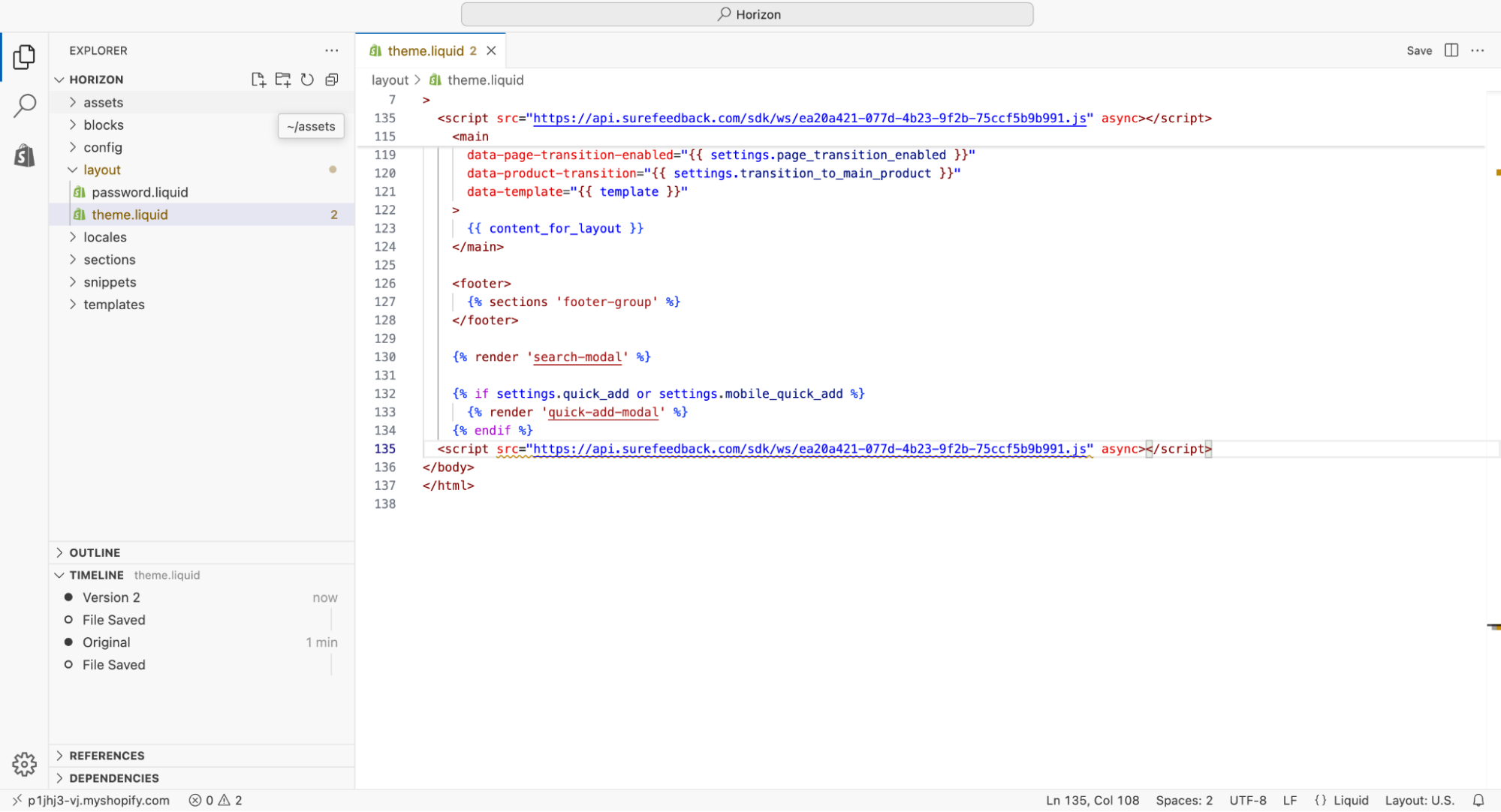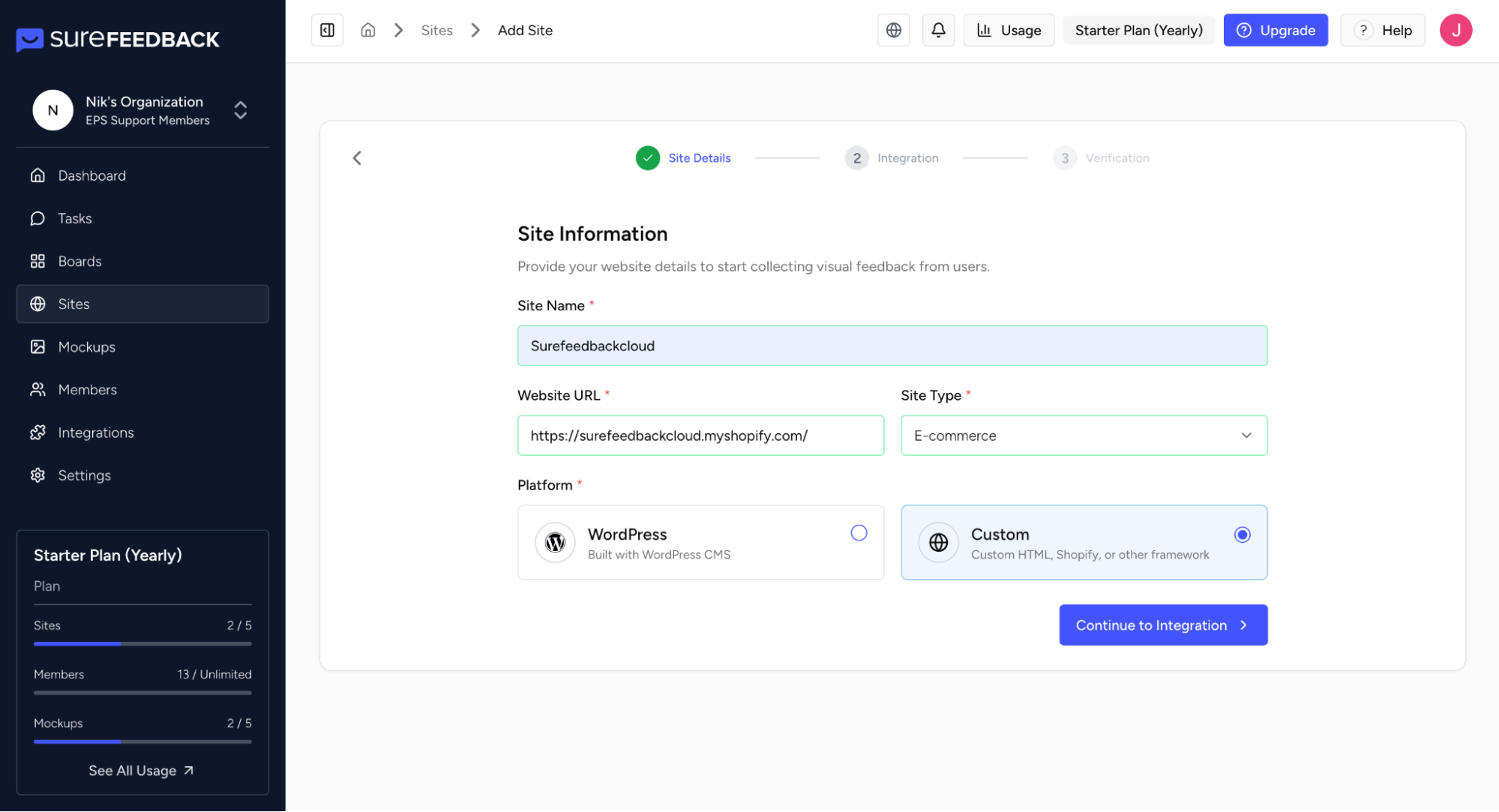 After creating the site, SureFeedback will generate a JavaScript installation snippet.